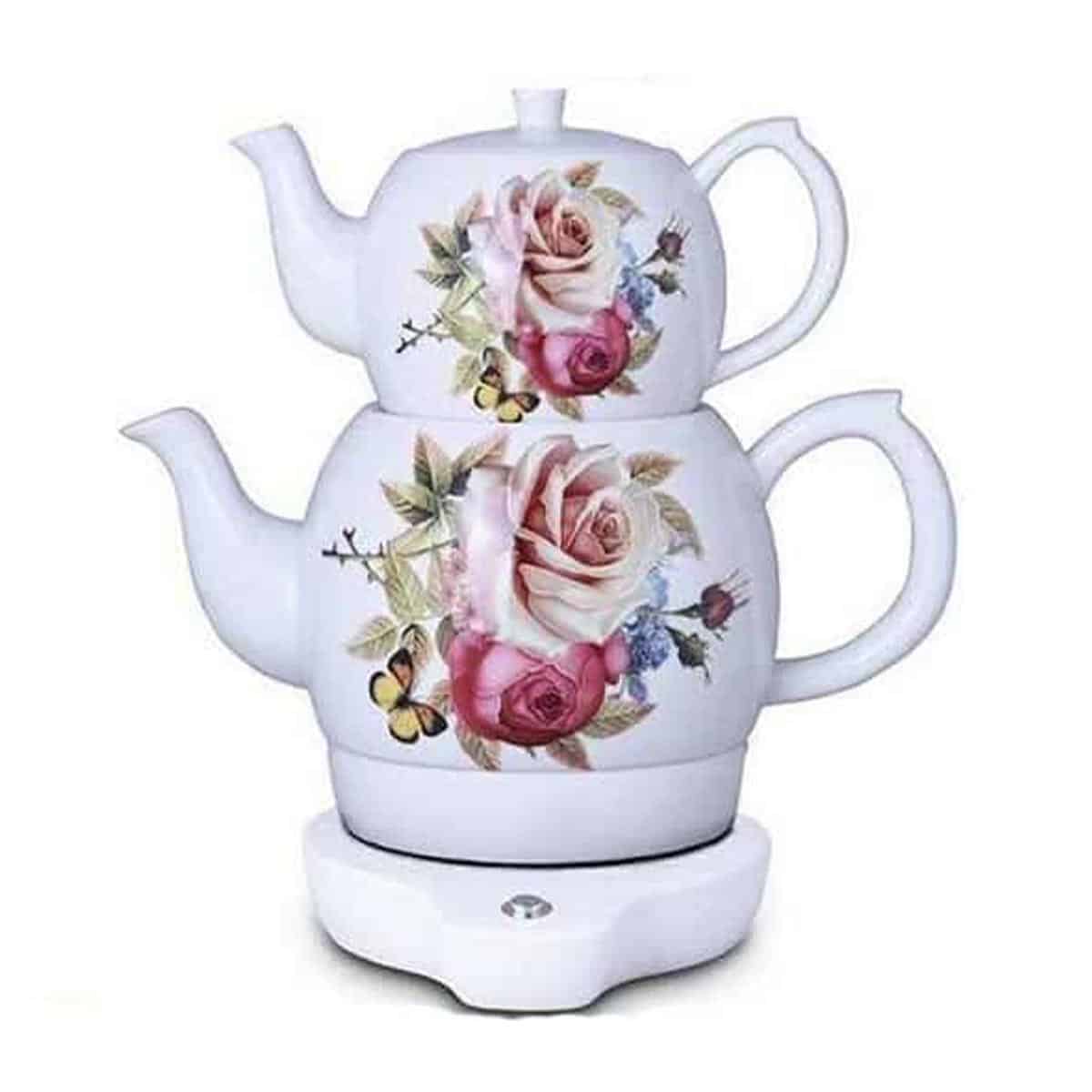 ظرفیت مناسب: کتری ۱٫۲ لیتری و قوری ۰٫۸ لیتری برای خانوادههای کوچک تا متوسط (تا ۱۵ فنجان).